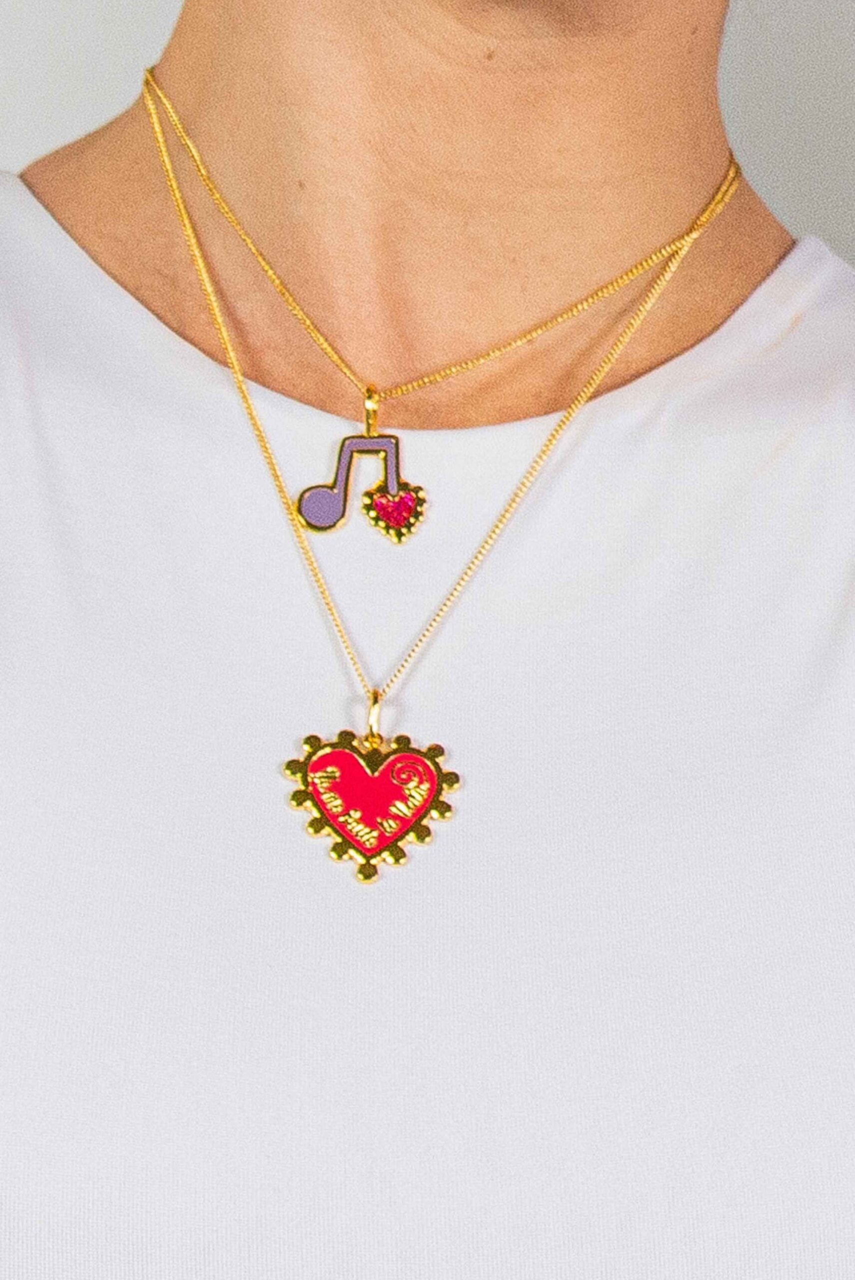 Cadena con dije de Nota Musical de 3cm, elaborado en bronce con baño de oro de 24k y pintado a mano.