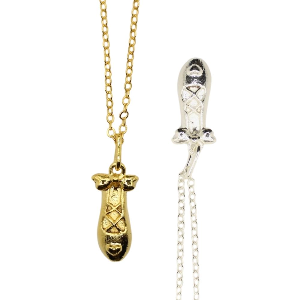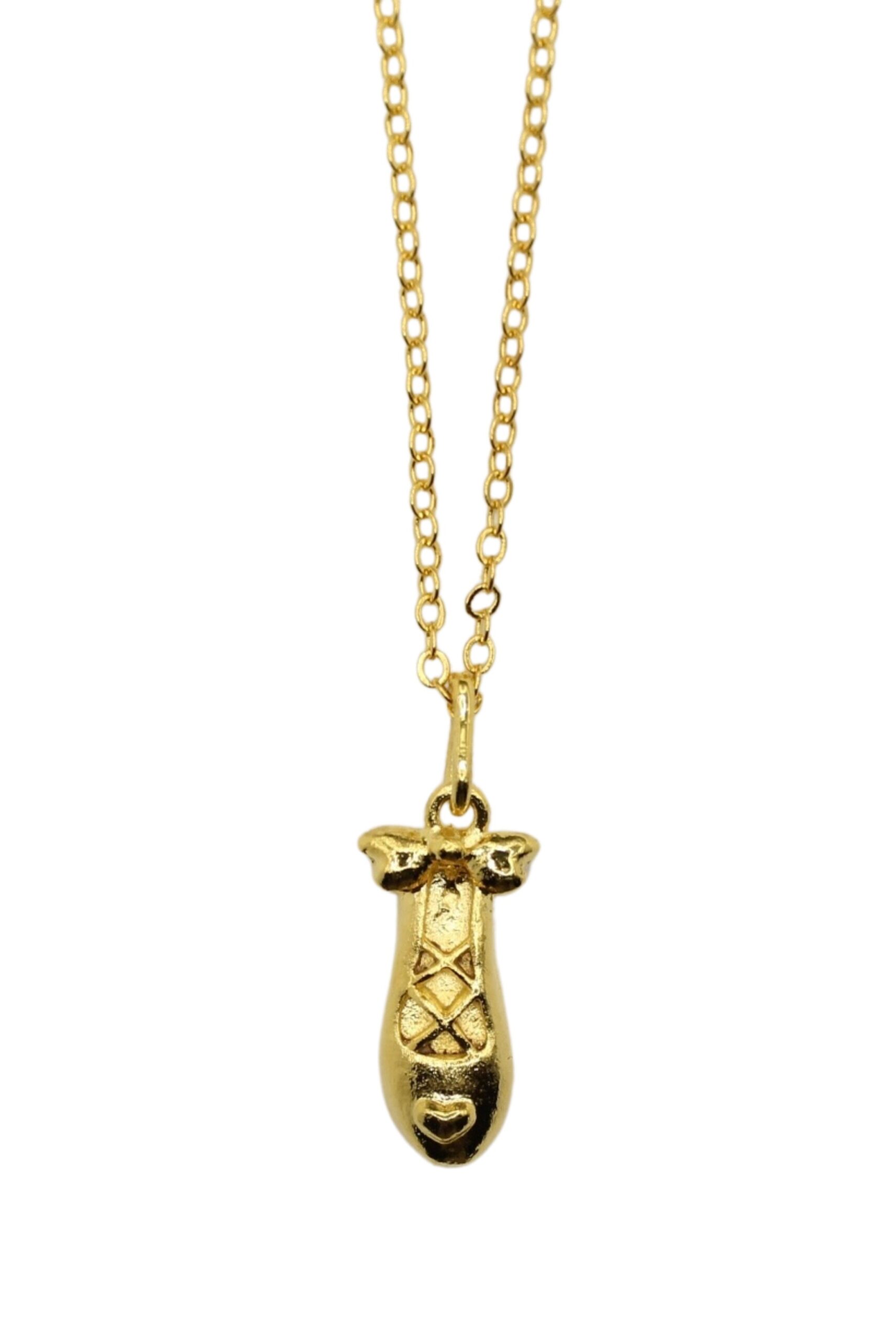 Cadena con zapatilla de Ballet, elaborada en bronce con baño de oro de 24k y/o plata.